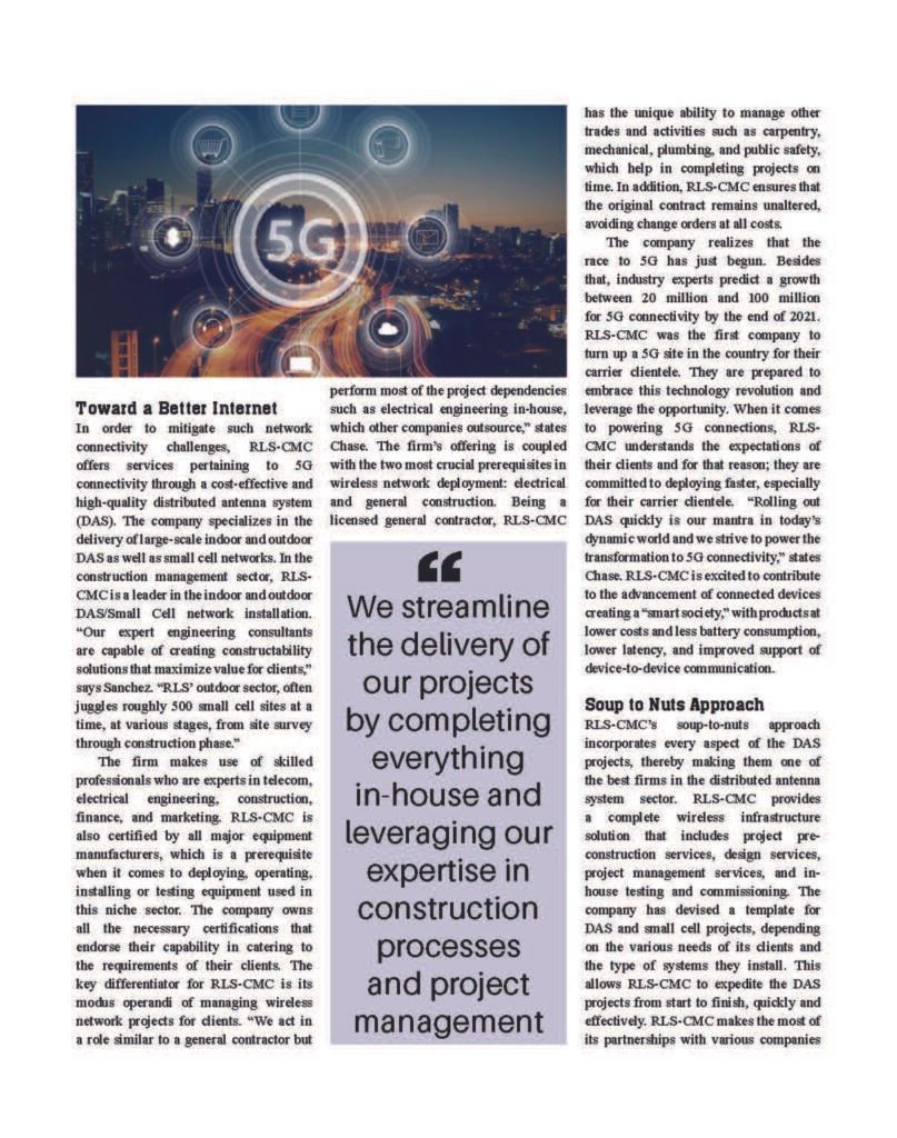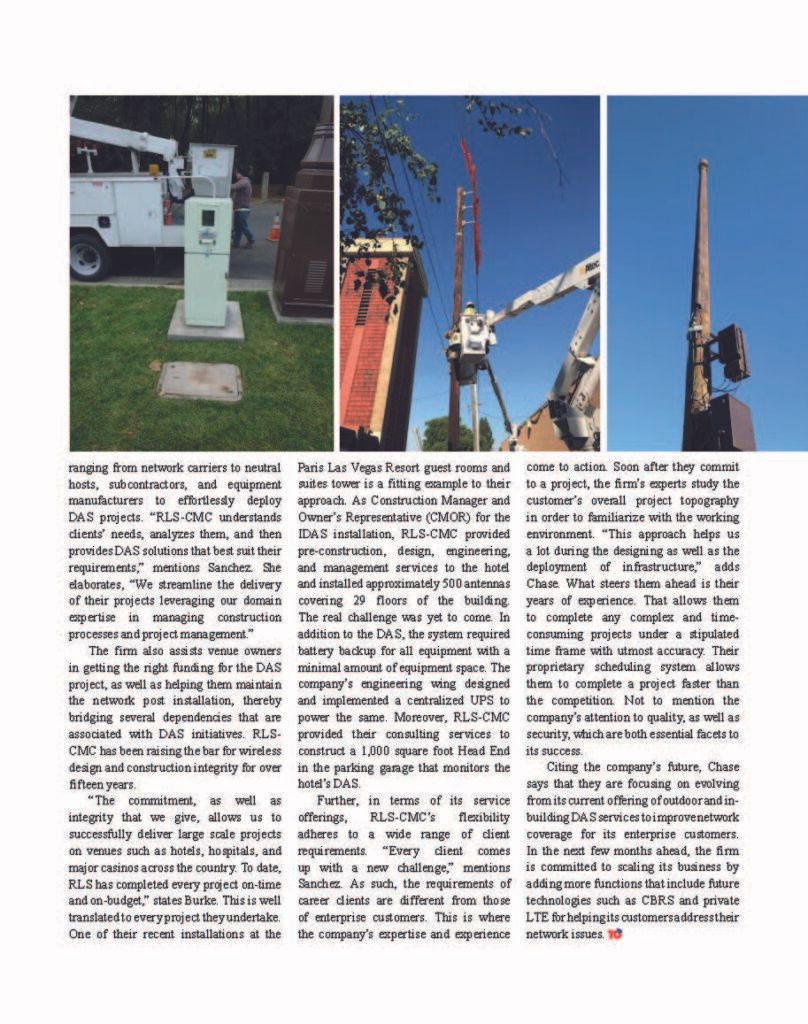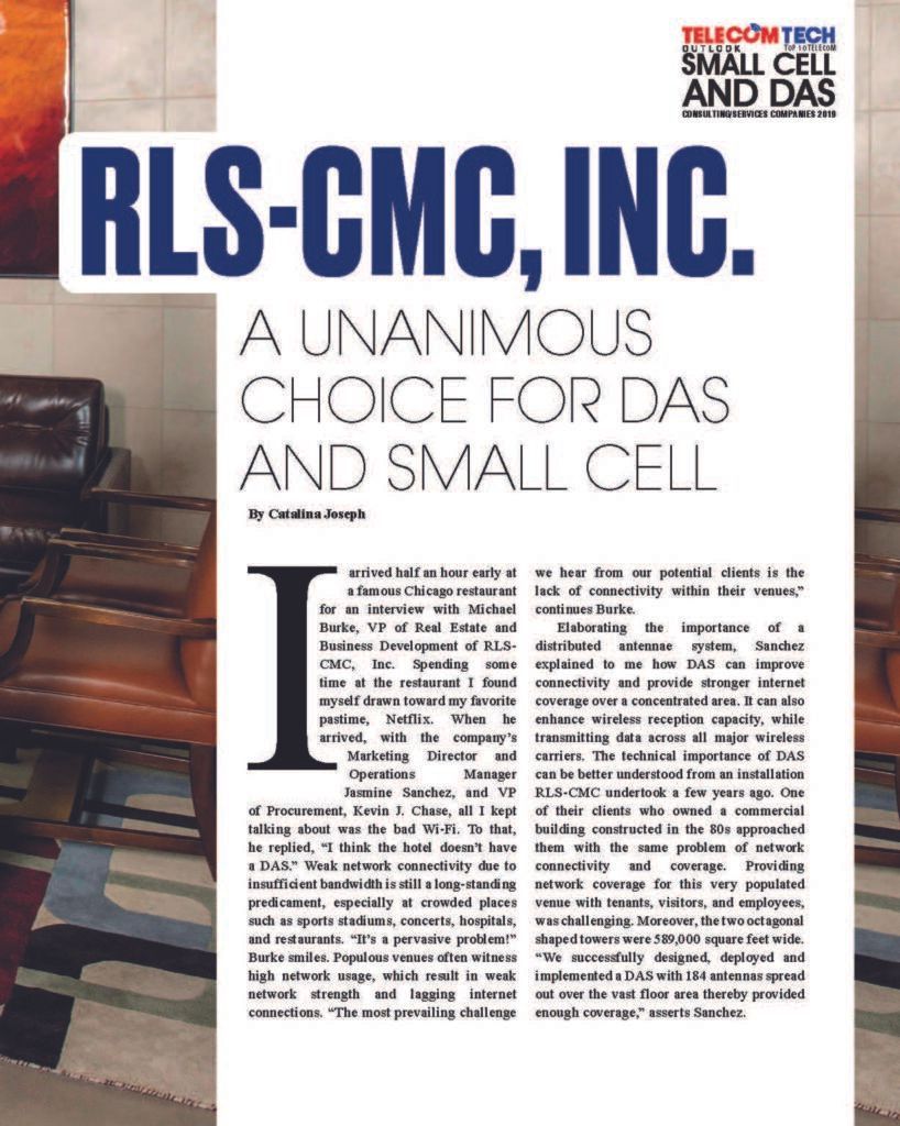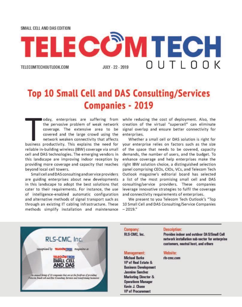 RLS-CMC, Inc. (RLS) has been named Top 10 DAS & Small Cell Companies of 2019 as featured in TelecomTech Outlook